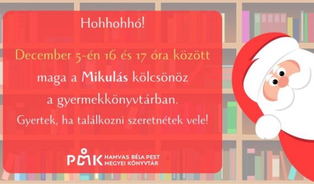 A Mikulás a könyvtárba is ellátogat, december 5-én péntek délután személyesen tőle kölcsönözhetnek könyvet a gyerekek.