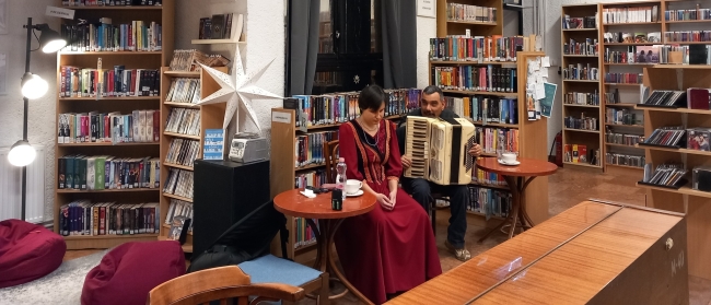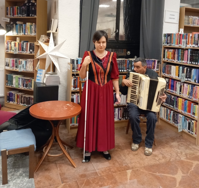 Ünnepváró, gyönyörű dallamokat hallhattak múlt pénteken a fonotékabeli népzenei koncerten az érdeklődők. Bartolf Zsuzsanna népdalénekes, mesemondó szépséges énekhangja és Horváth Attila Drogan harmonikás szerb dallamokat életrekeltő játéka, a magyar népdalok és a délszláv népzene egymásbafonódása maradandó élményt nyújtott a hallgatóságnak. Köszönjük Nekik!