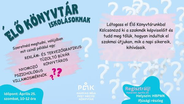 A tavalyi alkalomhoz hasonlóan idén is megszervezzük 'Élő könyvtár' programunkat, mely elsősorban a pályaválasztás előtt álló diákoknak szól.