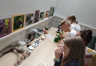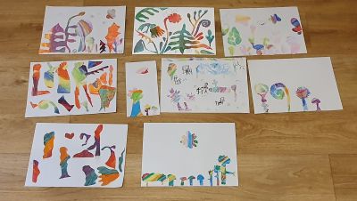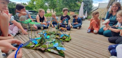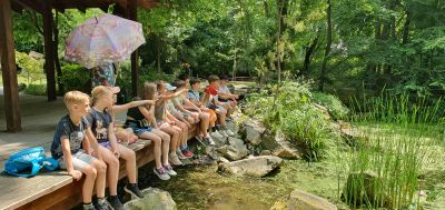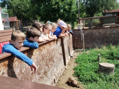 Csütörtökön végre eljutottunk a Szentendrei Kisállatkertbe, ahol titkos kódok megfejtésével csapatmunkában nyomozták ki a gyerekek az állatkertek küldetését. Délután Csíkszentmihályi Berta képzőművész-illusztrátorral alkottunk patakparti életképet szitakötővel, amihez a gyerekek mesét is rögtönöztek.