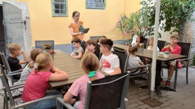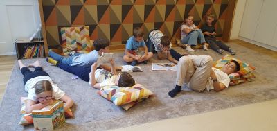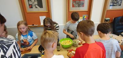 A szerdai napunk az egészséges és fenntartható étkezés jegyében telt: délelőtt a helyi piacon jártunk, beszereztük az aznapi gyümölcsöt és a délutáni görögsaláta alapanyagait, amit Kalas Györgyi gasztromeseíróval készítettünk el. Jutott idő játékra és olvasgatásra is.