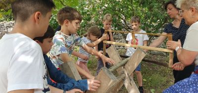 Az utolsó nap hosszúra nyúlt délelőttjét a Szentendrei Skanzenben töltöttük, ahol a fenntarthatóbb hagyományos falusi életmóddal ismerkedtünk, és házkörüli munkákat próbálhattak ki a gyerekek (vajköpülés, szénaforgatás, fűrészelés). A késői ebéd után már zártuk is a tábort: közös versírással végül a hét során készült képek vetítésével. Búcsúajándékul mindenki választhatott egyet emlékbe a Magyar Madártani Egyesület kitűzői közül.